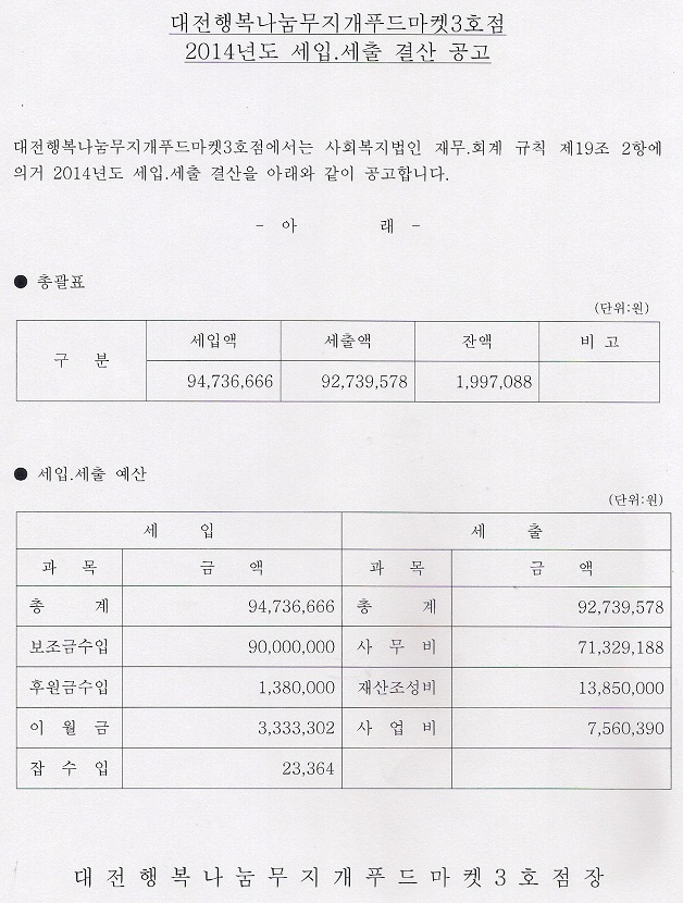 19-03-28 11:19 대전행복나눔무지개푸드마켓3호점 2014년도 세입.세출 결산공고 페이지 정보 작성자 성우보육원 댓글 0건 조회 5,281회 본문 대전행복나눔무지개푸드마켓3호점 2014년도 세입.세출 결산공고 목록 댓글목록 댓글목록 등록된 댓글이 없습니다.