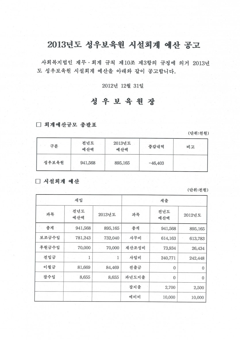 19-03-28 10:57 2013년도 성우보육원 시설회계 예산공고 페이지 정보 작성자 성우보육원 댓글 0건 조회 5,607회 본문 2013년도 성우보육원 시설회계 예산공고 목록 댓글목록 댓글목록 등록된 댓글이 없습니다.