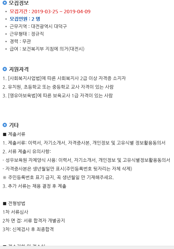 19-03-25 11:50 (공고) 생활지도원 모집 페이지 정보 작성자 성우보육원 댓글 0건 조회 6,169회 본문 생활지도원 모집 ※ 정확한 정보는 복지넷 공고 참고해주세요. 목록 댓글목록 댓글목록 등록된 댓글이 없습니다.