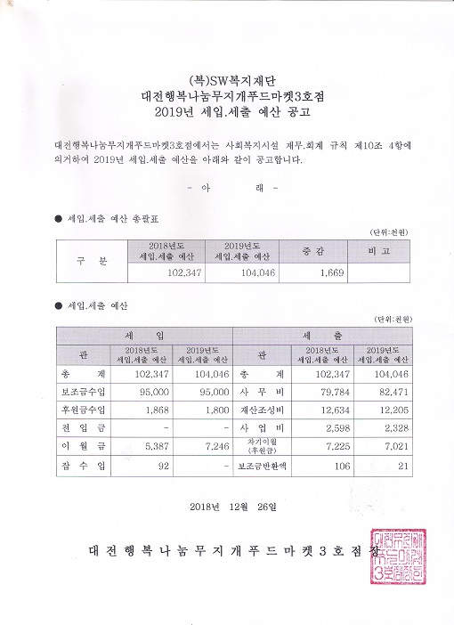 19-03-28 11:48 2019년도 대전행복나눔무지개푸드마켓3호점 세입.세출 예산공고 페이지 정보 작성자 성우보육원 댓글 0건 조회 5,176회 본문 2019년도 대전행복나눔무지개푸드마켓3호점 세입.세출 예산공고 목록 댓글목록 댓글목록 등록된 댓글이 없습니다.