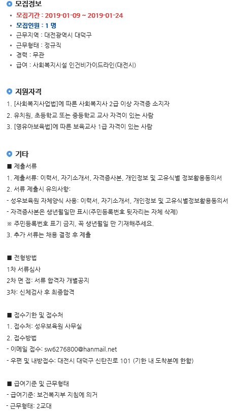 19-03-28 11:48 (공고) 생활지도원 모집 페이지 정보 작성자 성우보육원 댓글 0건 조회 5,892회 본문 생활지도원 모집 ※ 접수된 서류는 일체 반환치 않음 복지넷(https://www.bokji.net/job/off/01_01.bokji)의 첨부문서 활용 목록 댓글목록 댓글목록 등록된 댓글이 없습니다.