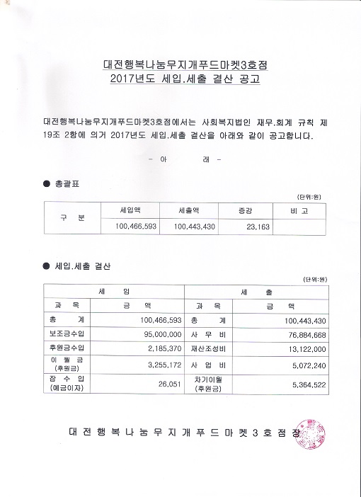 19-03-28 11:44 (공고)대전행복나눔무지개푸드마켓3호점 2017년도 세입.세출 결산 페이지 정보 작성자 성우보육원 댓글 0건 조회 5,598회 본문 (공고)대전행복나눔무지개푸드마켓3호점 2017년도 세입.세출 결산 목록 댓글목록 댓글목록 등록된 댓글이 없습니다.