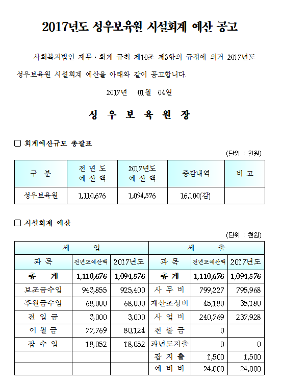 19-03-28 11:35 2017년 성우보육원 시설회계 예산 공고 페이지 정보 작성자 성우보육원 댓글 0건 조회 5,851회 본문 2017년 성우보육원 시설회계 예산 공고 목록 댓글목록 댓글목록 등록된 댓글이 없습니다.