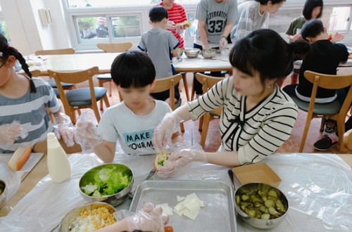 초등학생 아동들이 행동하는 양심 봉사자분들과 함께 석고 방향제와 핫도그 만들어 먹었습니다…