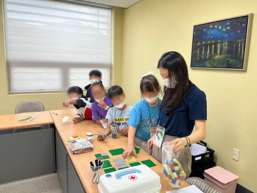 블록으로 아동들이 원하는 서점 만들기 수업을 진행해 주셨습니다.