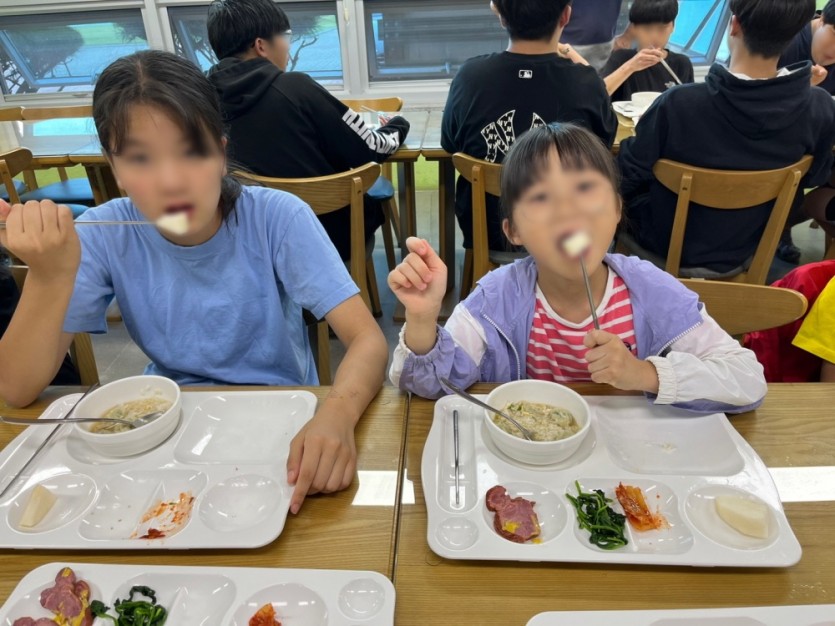 아이들은 식사 후 후식으로 달콤한 배를 먹으며 아직 오지 않은 추석에 대한 설레임으로 가득 찬 모습 보였습니다!