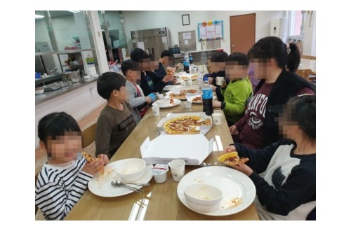 피자헛 대전한남점에서 피자 후원해주셨습니다.저녁식사시간에 우리 아이들이 삼삼오오 모여 이야기 꽃을 …