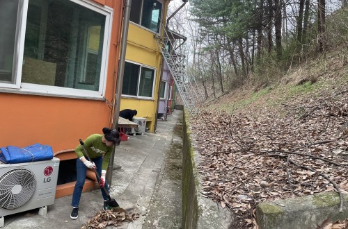 우송대 로타렉트 봉사단분들 오셔서 화단 정리 해 주셨습니다.나무 사이사이에 쌓인 낙엽을 정리해주셔서…