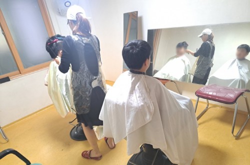 트윈스 미용실 마인자 원장님께서 내방하셔서 성우 아이들의 미용을 해 주셨습니다.길이를 조…