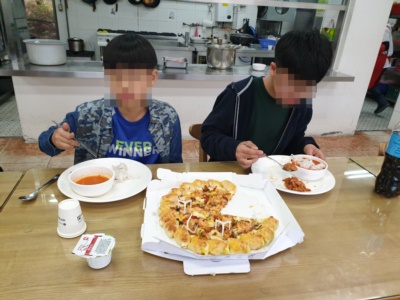 피자를 후원해주신 덕분에 아동들이 배부르게 식사 할 수 있었습니다.