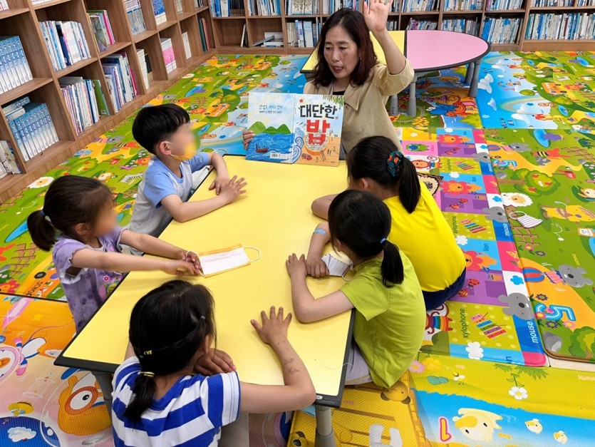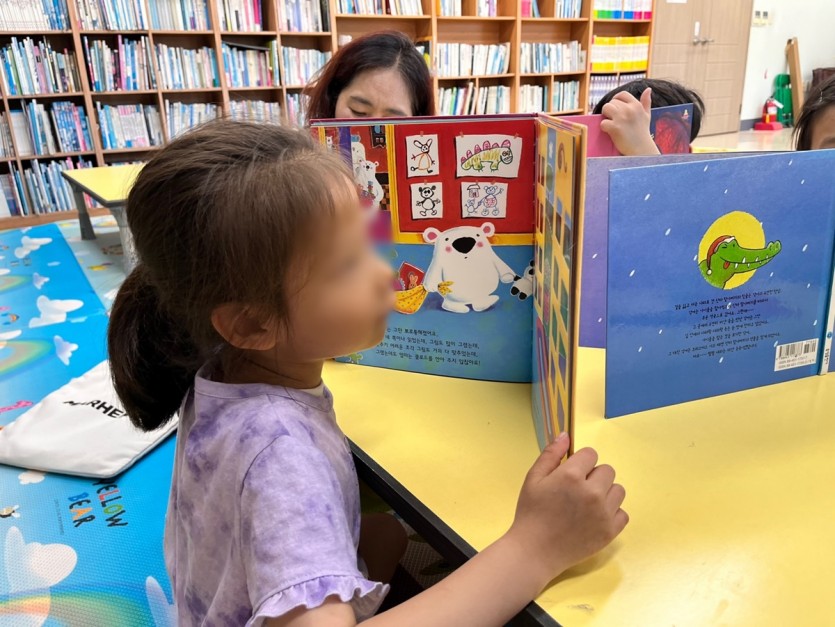 아이들을 위해 재미있는 책을 열정적으로 읽어주시는 사서님 덕분에